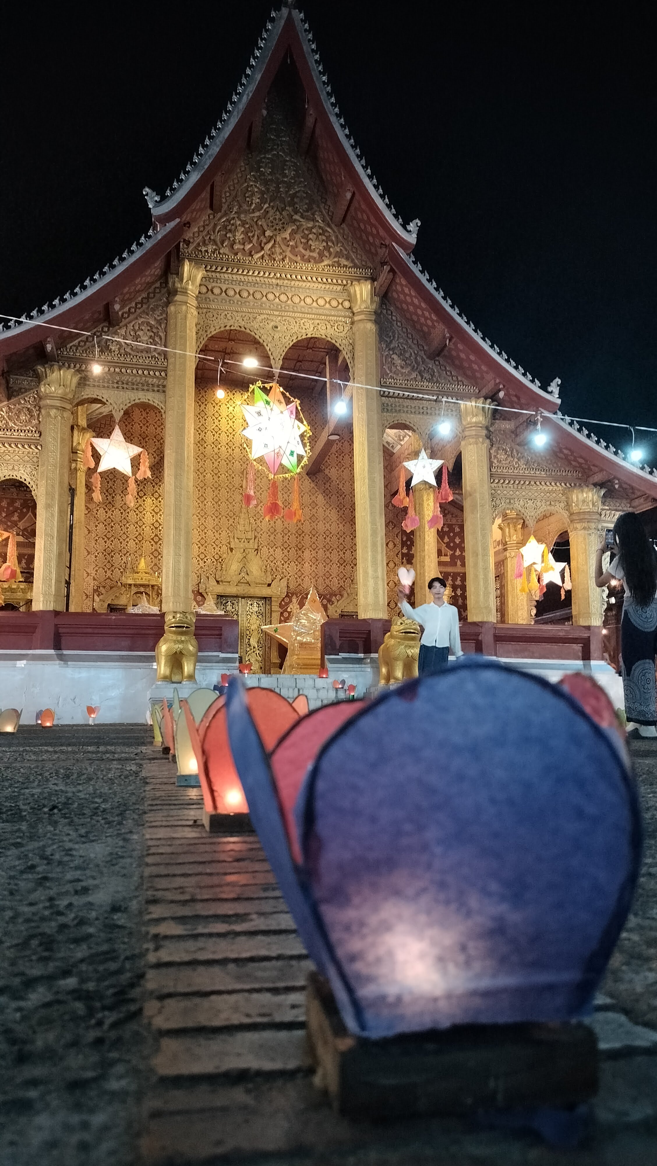 බුකින් එකෙන් බුක්කල නිසා අපි හිටිය තැන සිටි එකේ ටුවරිස් ඒරියල් එකට බොහොම කිට්ටුයි. ලංකාවේ වගේ නෙමෙයි මේ ලුවන් ප්රබාන් වල එකකට එකක් යාබද පන්සල් සෙට් එකක්ම තියෙනවා. උත්සව දවස නිසා ඒ හැම පන්සලකම පහන් පත්තුකරලා හැඩකරලා තිබුනා. බකට් ලාම්පු වගේ ඒවා බිම අතුරලා ලස්සනට හදලා තිබුනා.